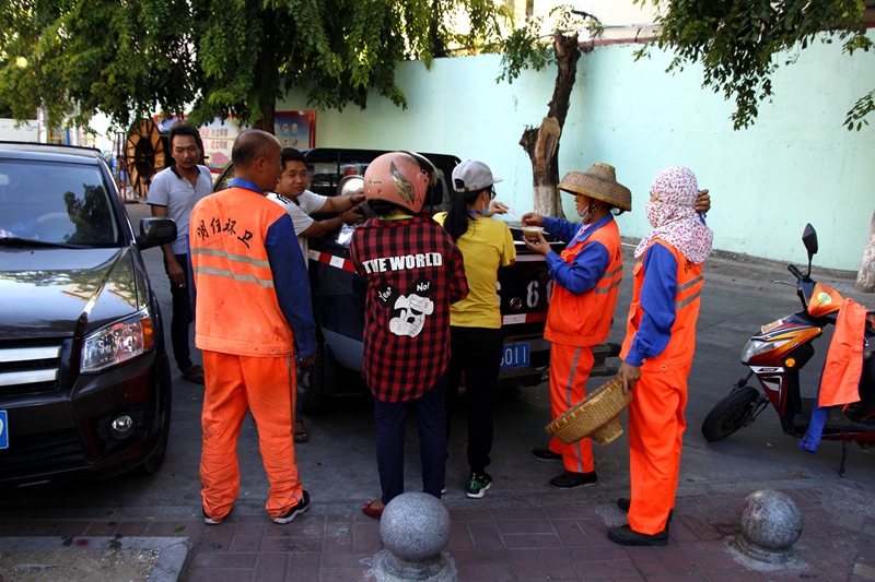 在鳳凰路一中路段、海虹廣場(chǎng)等地,正在清掃保潔作業(yè)的員工們頂著烈日,堅(jiān)守一線,為城市的干凈整潔不停歇地忙碌著。工會(huì)主席高斐斐表示,在這么炎熱的天氣下,員工們依舊堅(jiān)守在城市的大街小巷揮灑著汗水,十分辛苦。她叮囑員工們?cè)诒WC工作質(zhì)量的同時(shí),要科學(xué)調(diào)整作息時(shí)間,合理安排勞動(dòng)生產(chǎn),確保在高溫天氣下作業(yè)安全。勉勵(lì)大家繼續(xù)發(fā)揚(yáng)明佳精神,為創(chuàng)造更加整潔、舒適、優(yōu)美的城市人居環(huán)境和“創(chuàng)文鞏衛(wèi)”工作作出更大貢獻(xiàn)。