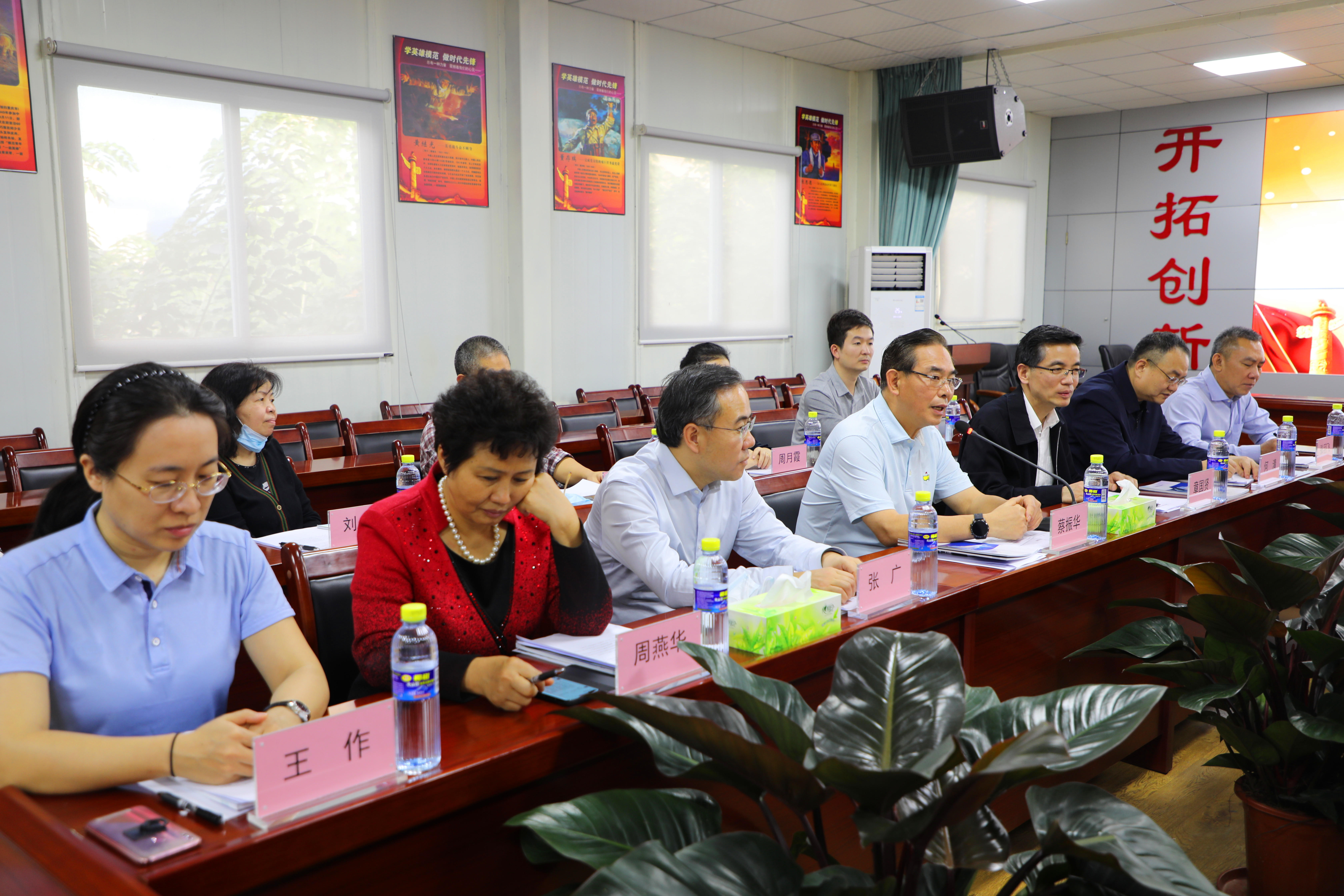 董事長陳明、總裁陳云及工會主席高斐斐在集團門前迎接蔡副主席的到來。