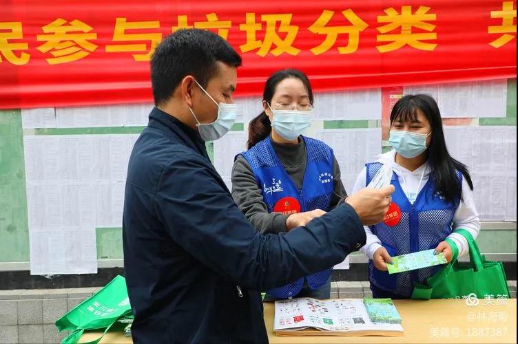 吉陽環(huán)衛(wèi)垃圾分類督導(dǎo)員與社區(qū)工作人員對居民分發(fā)垃圾分類手冊