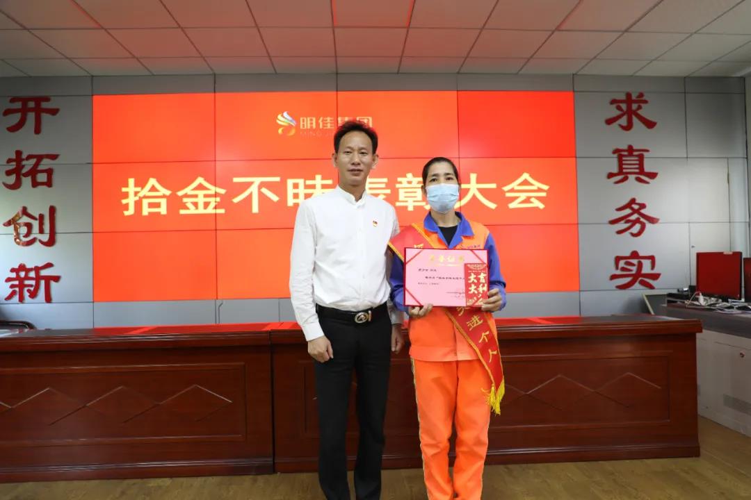 會(huì)上,明佳集團(tuán)黨支部書記、董事長陳明宣讀了《關(guān)于羅少女及吉陽四隊(duì)拾金不昧的表彰通報(bào)》