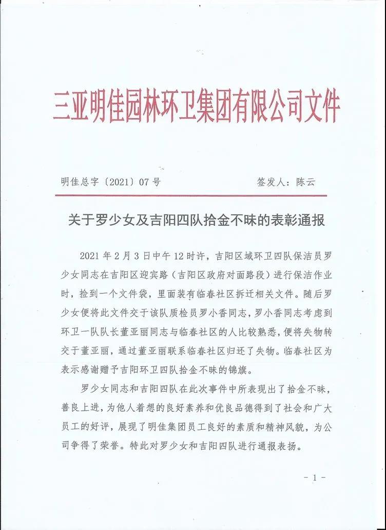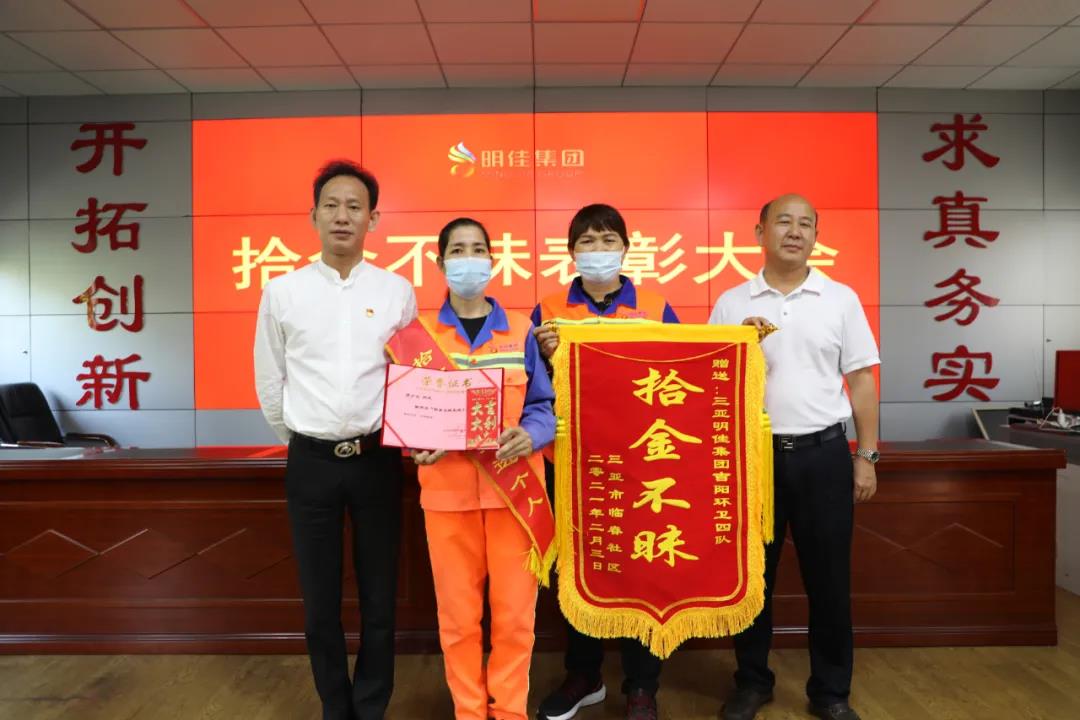 為表彰羅少女同志拾金不昧的精神,三亞明佳園林環(huán)衛(wèi)集團(tuán)有限公司于2021年2月25日 15:30時(shí),在集團(tuán)公司三樓會(huì)議室召開拾金不昧表彰大會(huì)。明佳集團(tuán)黨支部書記、董事長陳明,黨支部副書記、總裁陳云及20名員工代表參加會(huì)議。