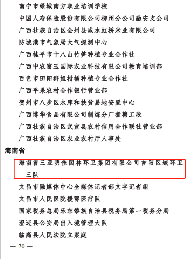 “芬芳三月,如歌巾幗?!痹趹c祝第111個三八國際勞動婦女節(jié)之際,三亞明佳園林環(huán)衛(wèi)集團有限公司吉陽區(qū)域環(huán)衛(wèi)三隊榮獲2020年度“全國巾幗文明崗”榮譽稱號?!叭珖韼轿拿鲘彙笔侨珖鴭D女“巾幗建功”活動專設崗, 是全國婦聯(lián)為表彰積極為國家、為社會、為人民做出突出貢獻,取得優(yōu)異的優(yōu)秀婦女團體而頒發(fā)的榮譽稱號。