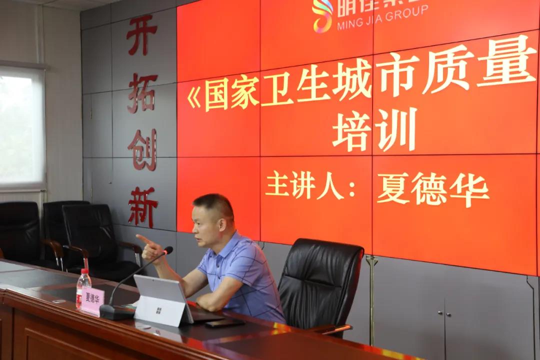 此次培訓(xùn)分三項內(nèi)容:一是總裁陳云分析國家衛(wèi)生城市復(fù)審形勢;二是夏德華調(diào)研員進(jìn)行《國家衛(wèi)生城市質(zhì)量標(biāo)準(zhǔn)》培訓(xùn);三是副總羅京鮮結(jié)合公司現(xiàn)狀進(jìn)行講解。