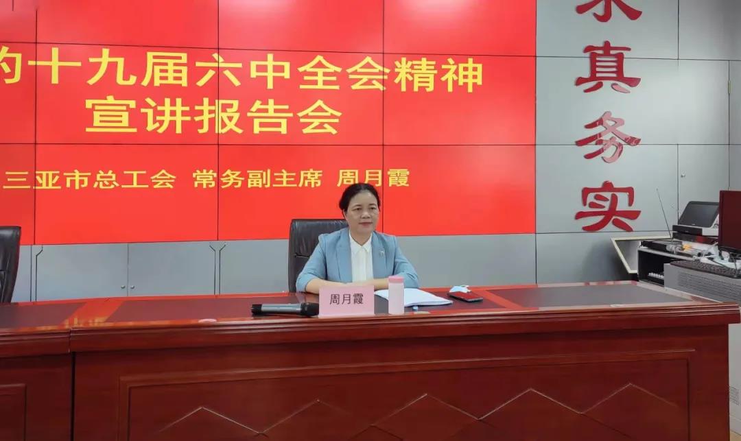 宣講會上,周月霞從黨的十九屆六中全會的重大意義、“兩個”確立、以“四個”歷史時期、“三次”飛躍、“十個”堅持等方面,結合三亞市第八次黨代會精神和工會工作實際,對全會精神作了深入淺出的闡釋和全面系統(tǒng)的解讀。她表示,希望大家能夠通過學習,更好地從黨的百年奮斗中看清楚過去我們?yōu)槭裁茨軌虺晒?、弄明白未來我們怎樣才能繼續(xù)成功,激發(fā)奮進新時代、邁好新征程、建功自貿(mào)港的斗志和豪情。
